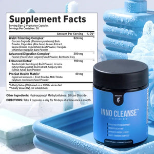 How do I take Inno Cleanse™?We recommend taking 2 capsules a day before bedtime for 14 days at a time once a month. You can take it with or without food, whichever works best for you.*Is it true that Inno Cleanse™ can help me trim down my waist?Absolutely! Most of our customers see an almost immediate flattening of the stomach due to excreting built up waste and decreasing bloating and water retention.*Will Inno Cleanse give me diarrhea?Inno Cleanse™ should not give you diarrhea. It usually gives customers more frequent bowel movements that are "bulkier" than usual. This is your body excreting built up waste trapped inside your intestines.*Does Inno Cleanse™ improve digestion? If so, is it just while I’m taking it?Inno Cleanse™ does improve digestion substantially. You will notice more frequent bowel movements while taking it and much more regular bowel movements for up to 2 weeks after. Inno Cleanse™ gives your body the extra push to get all of the "junk" and "build up" out of your intestines.* -