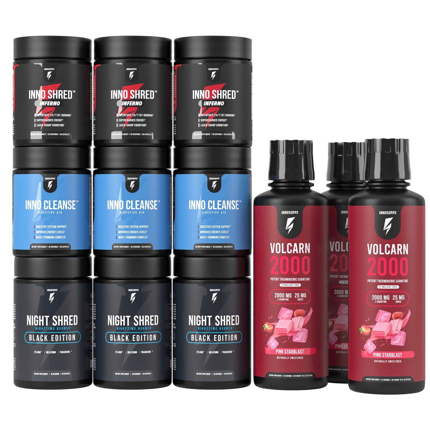 Supercharge your cognition and ignite your mental drive by harnessing the synergy of Volcarn 2000 & Inno Shred Inferno. Fuel your day with sustained energy, laser sharp focus and unparalleled mental clarity – all without the jitters or mid-day slumps.*