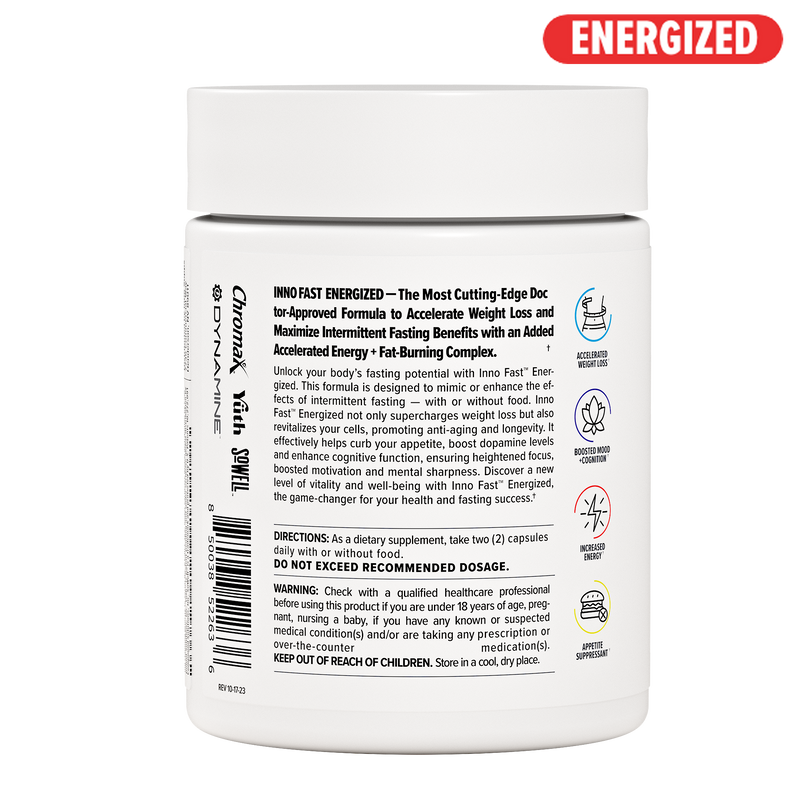 With Inno Fast, your fasting journey gets an incredible boost, so you can achieve extraordinary results in minimal time! By integrating Inno Fast into your fasting routine, you're not just getting a leaner, more shredded physique, but also reversing signs of aging, supercharging cognitive function, ramping up dopamine production, skyrocketing your energy levels, and much more. And, if you are new to intermittent fasting, Inno Fast will help curb cravings so you can practice your fast without the worry of lengthy starvation!*