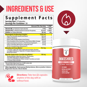 Both are highly effective at fat burning, but Inno Shred Focus contains powerful nootropics proven to boost cognitive function, and increase mental drive.*
