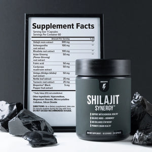 Shilajit Synergy™ is a holistic health supplement designed to promote cellular rejuvenation, improve mitochondrial performance, boost energy and enhance muscle growth. It combines powerful natural ingredients, including Shilajit, Ashwagandha and Rhodiola Root to support vitality, combat stress and improve sexual health.*