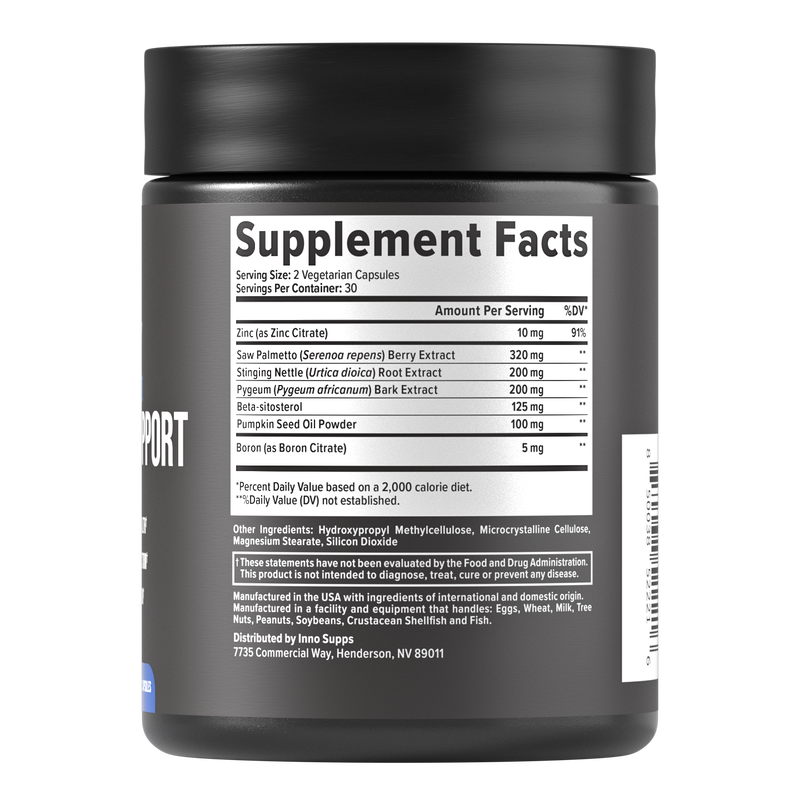 Pygeum bark and stinging nettle root may help support a healthy urine flow, while zinc and boron support overall health and male performance.*