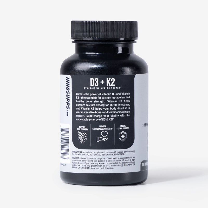 Unlock the secret to stronger bones with our Vitamin D3 + K2! The "Sunshine Vitamin" (D3), helps your body absorb calcium from your diet. Without sufficient D3, calcium simply passes through your body unused. Pairing this with Vitamin K2 is essential for absorption. K2 plays a crucial role in directing this calcium to where it's needed most! K2 also supports your body’s natural defense against calcium buildup in unwanted areas like arteries.*