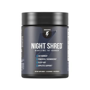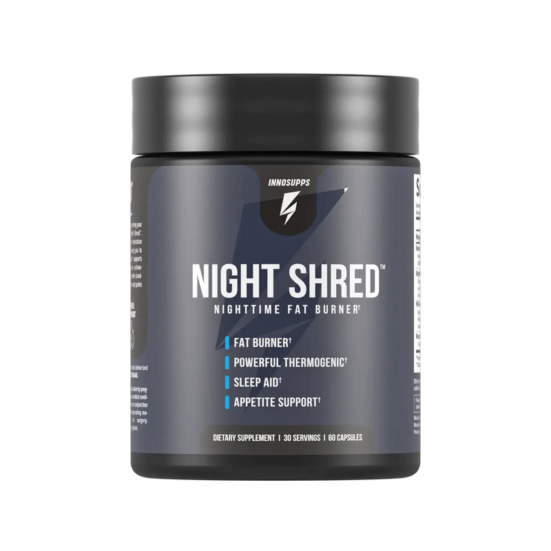 NIGHT SHRED™ Can I take this product combined with Inno Shred™ or Volcarn 2000? Inno Shred™, Volcarn 2000, and Night Shred™ can be taken in the same day together, but not at the same time! We recommend taking Night Shred™ six to eight hours after your last dose of Inno Shred™ and Volcarn 2000.* Will Night Shred™ show up on a drug test for athletes? While our products do not contain PEDs, we recommend checking over the label with your sports regulating committee before taking any supplement.* Can I take this with my thyroid/blood pressure/prescription medication? Please review the label with your physician before making a purchase.* -