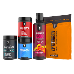 INCINERATE FAT Start your day with Inno Shred™ to fire up your metabolism and target stubborn fat. Combine it with Volcarn 2000 to double down on the fat-burning effects and keep the metabolism boost going all night with Night Shred Black.* -