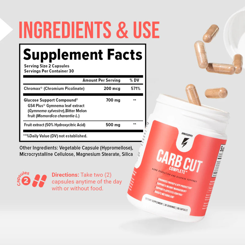 How does Carb Cut Complete™ work? Carb Cut Complete™ has ingredients that may help reduce carbohydrates from being digested, which may make it easier for your body to eliminate carb-heavy foods that would otherwise be converted to body fat.* -