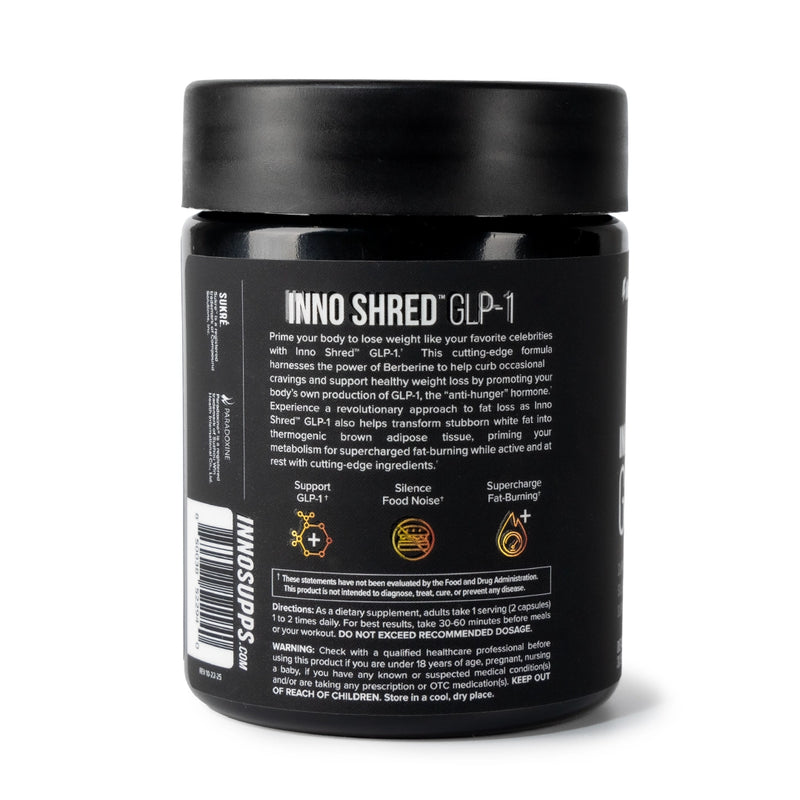 Inno Shred™ GLP-1 features powerful ingredients like Berberine Hydrochloride and Sukre™ to stimulate your body’s natural GLP-1 production. This key hormone helps keep unwanted food urges in check, making it easier to stay on track while supporting your body’s fat-burning potential.*